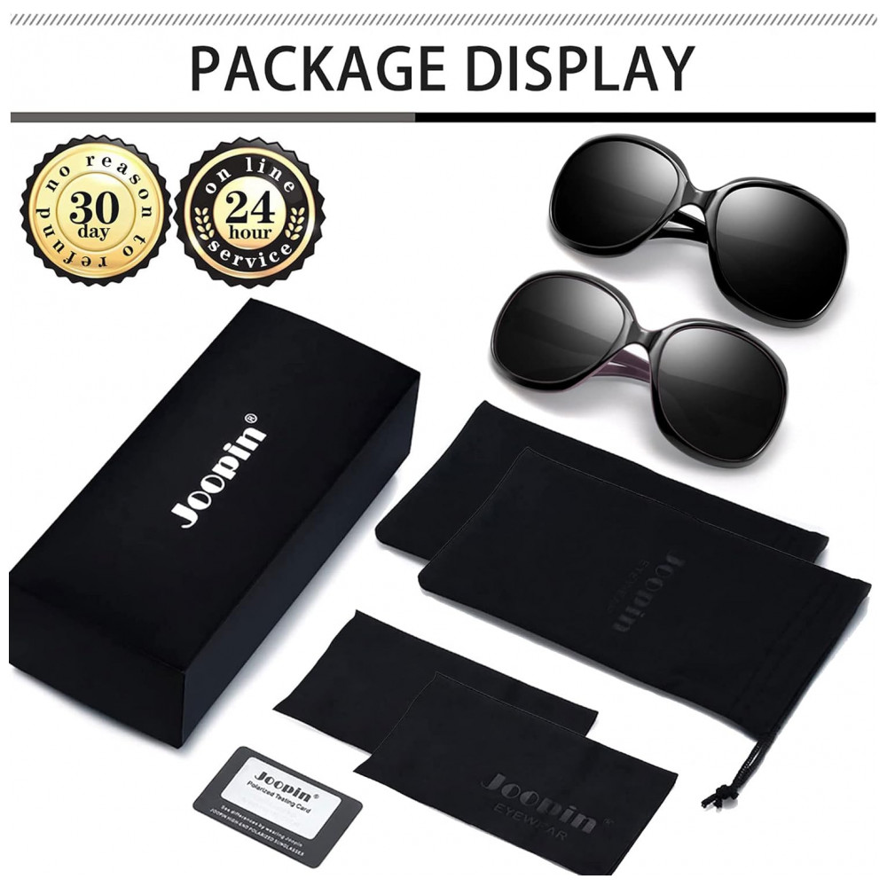 EXCELENTE PROTEÇÃO UV400 As lentes de visão dos óculos de sol são classificadas como 400UV, podem bloquear 99 100 da radiação UVA e UVB. Os óculos de sol polarizados com lentes resistentes a arranhões são essenciais para proteger seus olhos contra danos UV de longo prazo e manter seus olhos saudáveis. Quer esteja nublado ou ensolarado, os óculos de sol uv são as formas eficazes de prevenir o envelhecimento da pele ao redor dos olhos. Os enormes óculos de sol Joopin são confortáveis de usar, garantindo 100 de proteção UV.