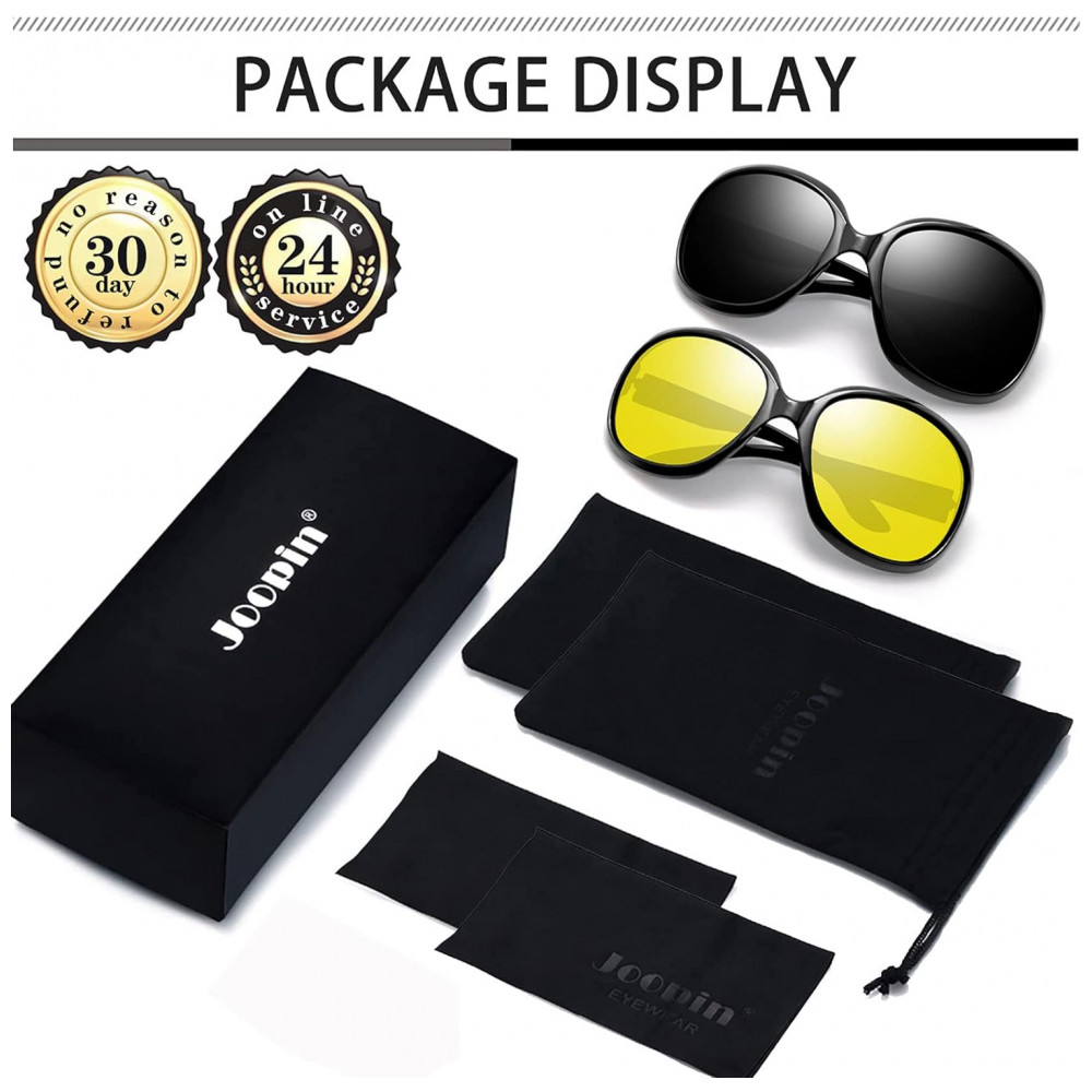 ÓCULOS JOOPIN PROTEGEM SEUS OLHOS O DIA TODO Os óculos de sol polarizados Joopin podem ser s durante o dia para permitir que você aproveite o sol facilmente, e os óculos noturnos podem ser s à noite para garantir a segurança na direção. As lentes polarizadas de Joopin todos os óculos de sol pretos podem filtrar o brilho refletido pela luz solar, restaurar a cor verdadeira. Os óculos noturnos Joopin reduzem efetivamente o brilho noturno dos faróis dos carros que se aproximam. Os óculos de sol pretos e os óculos de sol amarelos protegem seus olhos o dia todo.