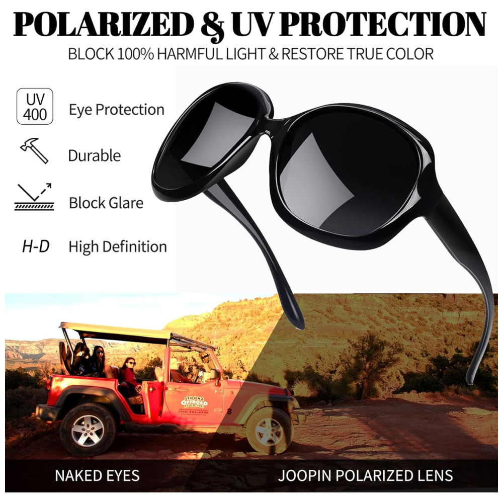 LENTE POLARIZADA SUPERIOR Os óculos de sol polarizados femininos antirreflexo Joopin reduzem o brilho refletido em estradas, corpos dágua, neve e outras superfícies horizontais. Os óculos polarizados podem restaurar a cor verdadeira, sem distorção de imagens saturadas de cores. Óculos de lentes escuras polarizadas podem ajudá lo a aproveitar o sol sem um fardo. Os grandes óculos de sol Joopin sempre protegem seus olhos perfeitamente. Pacote com 2 óculos de sol elegantes em massa, óculos de sol pretos para dirigir e óculos de sol verdes para uso diário.