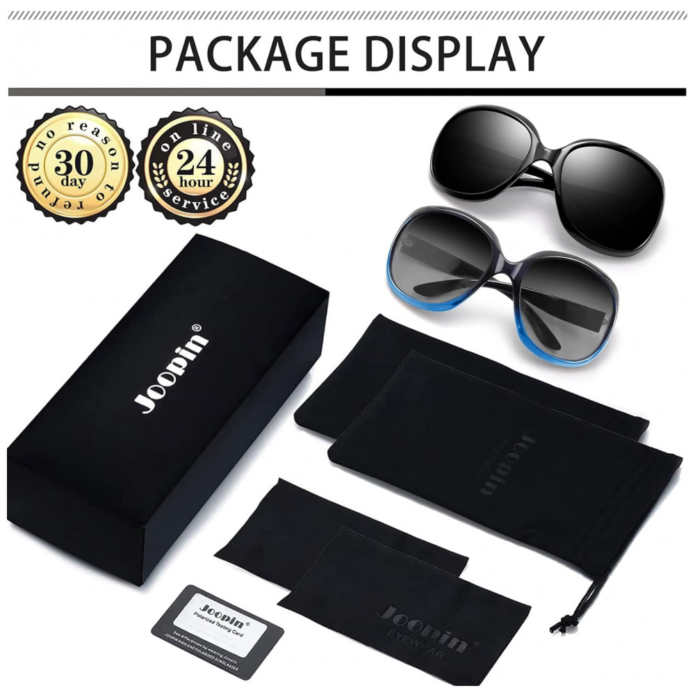 LENTE POLARIZADA SUPERIOR Os óculos de sol polarizados femininos antirreflexo Joopin reduzem o brilho refletido em estradas, corpos dágua, neve e outras superfícies horizontais. Os óculos polarizados podem restaurar a cor verdadeira, sem distorção de imagens saturadas de cores. Óculos de lentes escuras polarizadas podem ajudá lo a aproveitar o sol sem um fardo. Os grandes óculos de sol Joopin sempre protegem seus olhos perfeitamente. Pacote com 2 óculos de sol elegantes em massa, óculos de sol pretos para dirigir e óculos de sol azuis para uso diário.