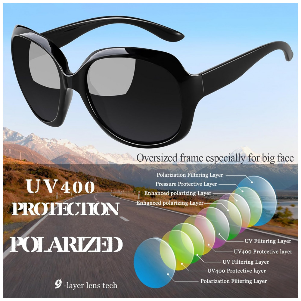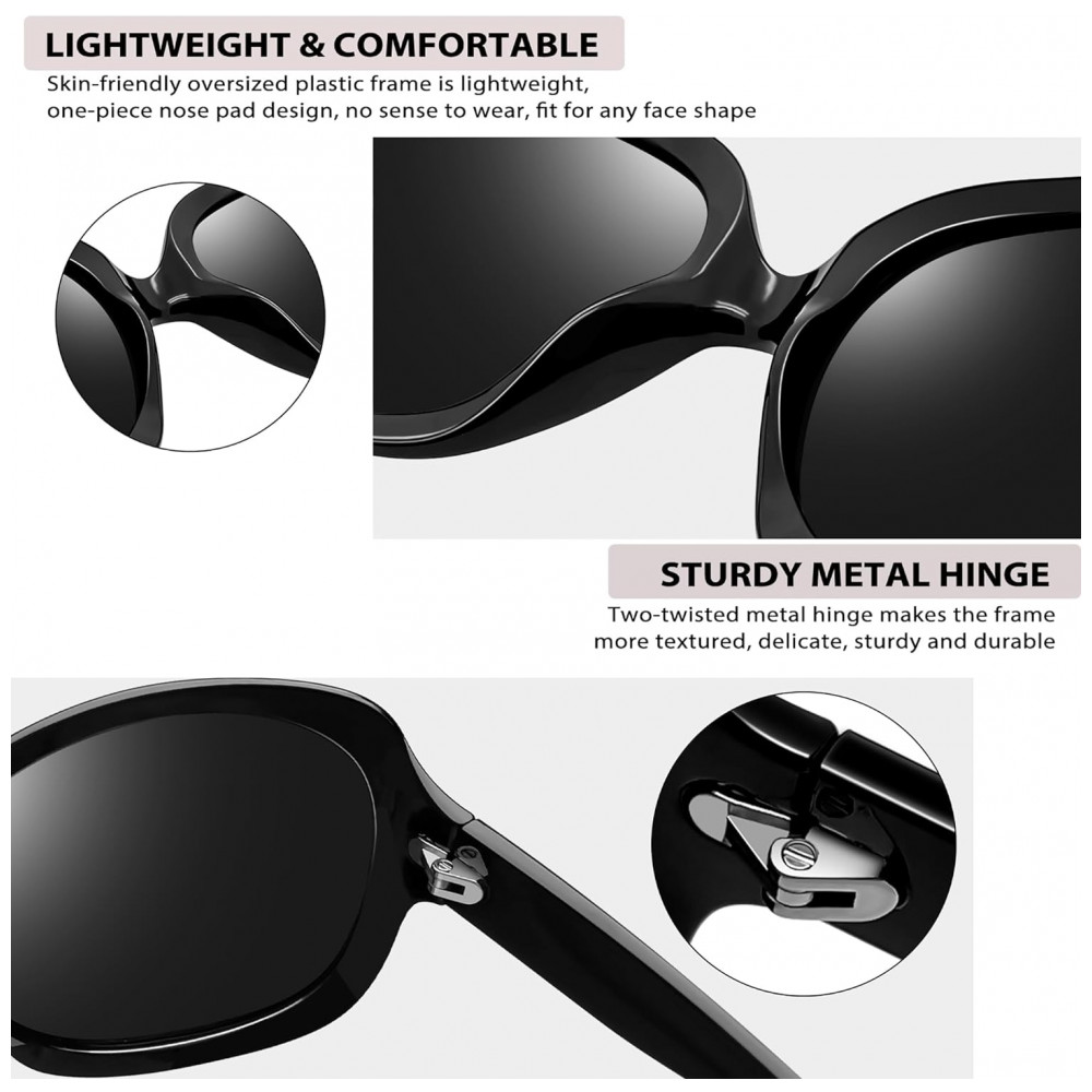 EXCELENTE PROTEÇÃO UV400 As lentes de visão dos óculos de sol grandes são classificadas como 400UV, podem bloquear 99 100 da radiação UVA e UVB. Os óculos de sol femininos polarizados com lentes resistentes a arranhões são essenciais para proteger seus olhos contra danos UV de longo prazo e manter seus olhos saudáveis. Quer esteja nublado ou ensolarado, os óculos de sol uv são as formas eficazes de prevenir o envelhecimento da pele ao redor dos olhos. Os lindos óculos de sol são confortáveis de usar, garantindo 100 de proteção UV.