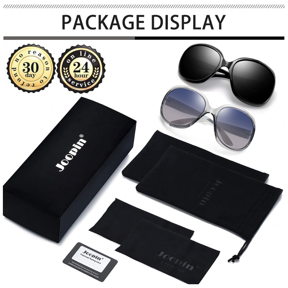LENTE POLARIZADA SUPERIOR Os óculos de sol polarizados antirreflexo Joopin para mulheres reduzem o brilho refletido em estradas, corpos dágua, neve e outras superfícies horizontais. Os óculos polarizados podem restaurar a cor verdadeira, sem distorção de imagens saturadas de cores. Lentes polarizadas de óculos de sol grandes podem ajudá lo a aproveitar o sol sem problemas. Os óculos escuros Joopin sempre protegem seus olhos perfeitamente. Pacote com 2 óculos de sol a granel, óculos de sol pretos para dirigir e óculos de sol gradientes para uso diário.