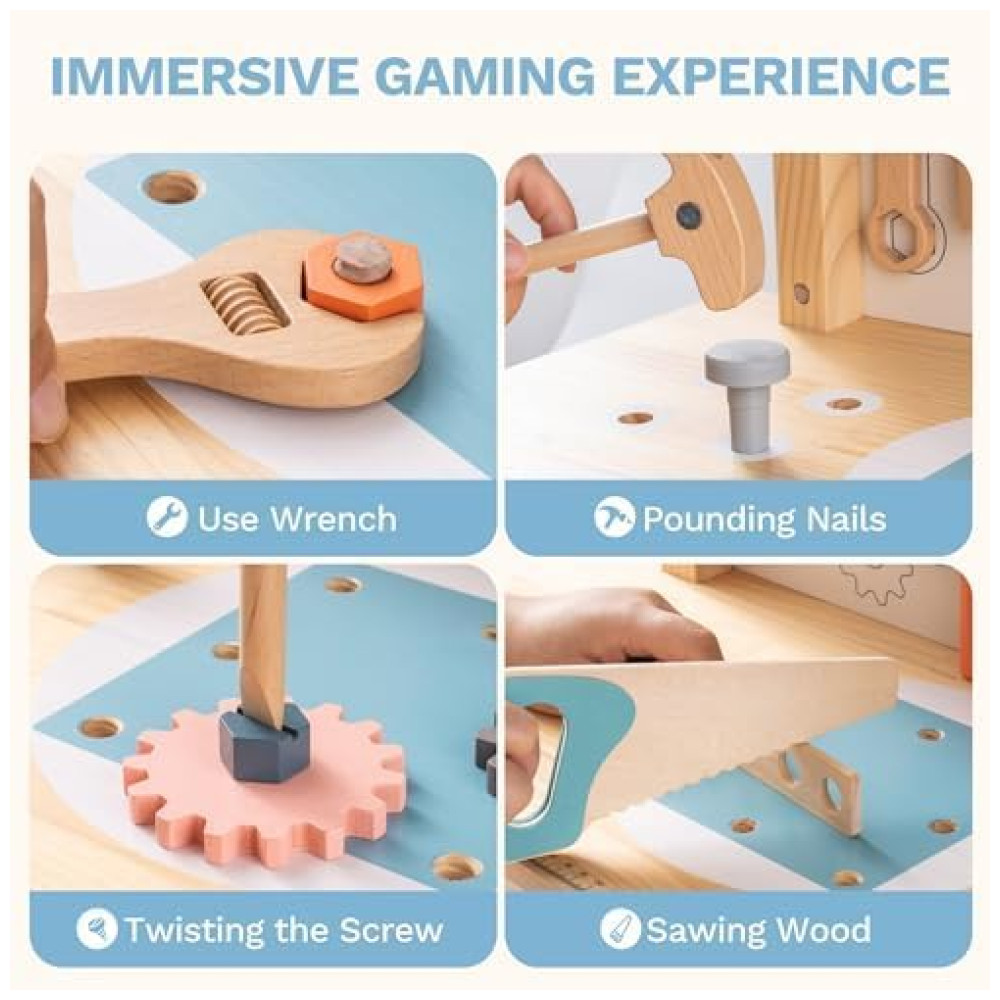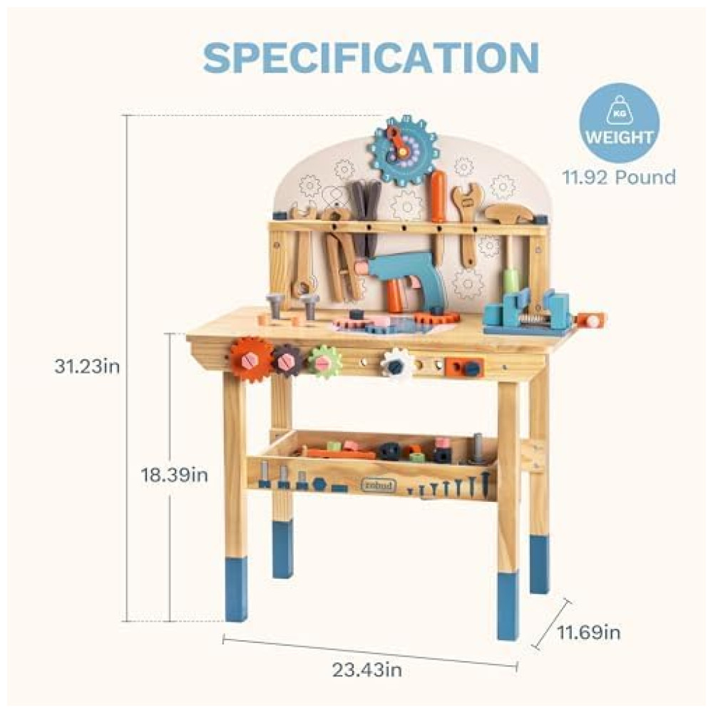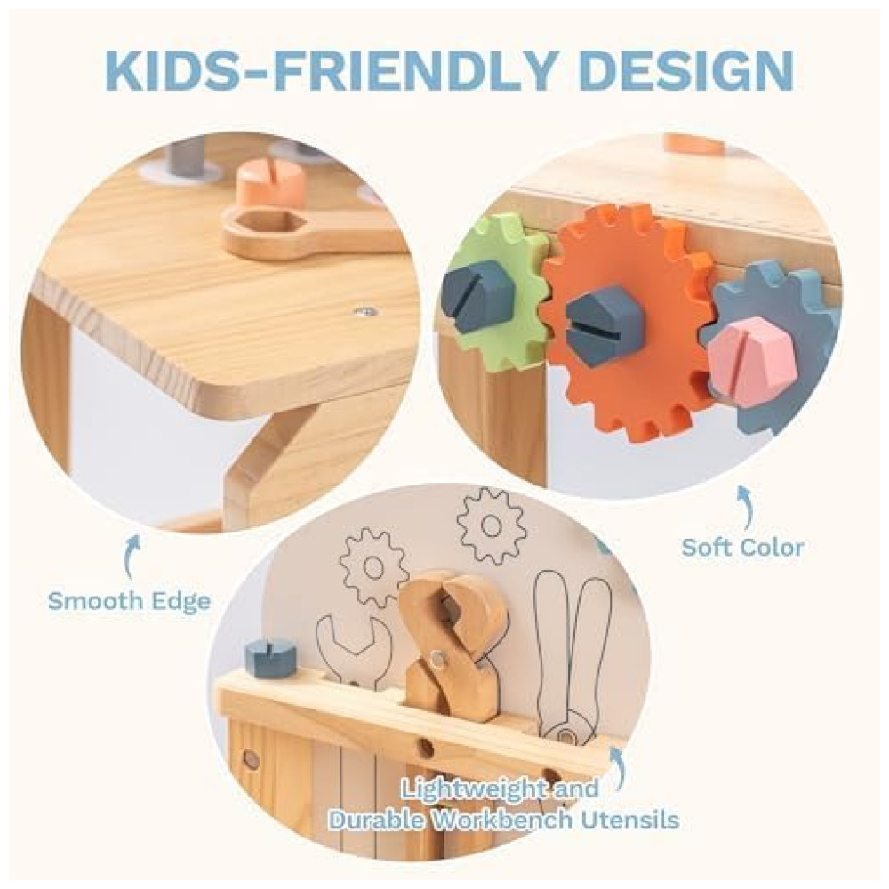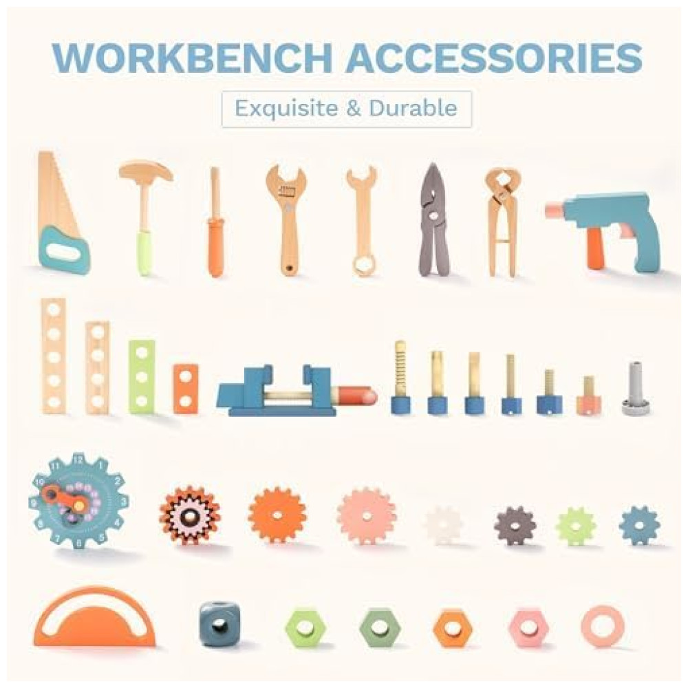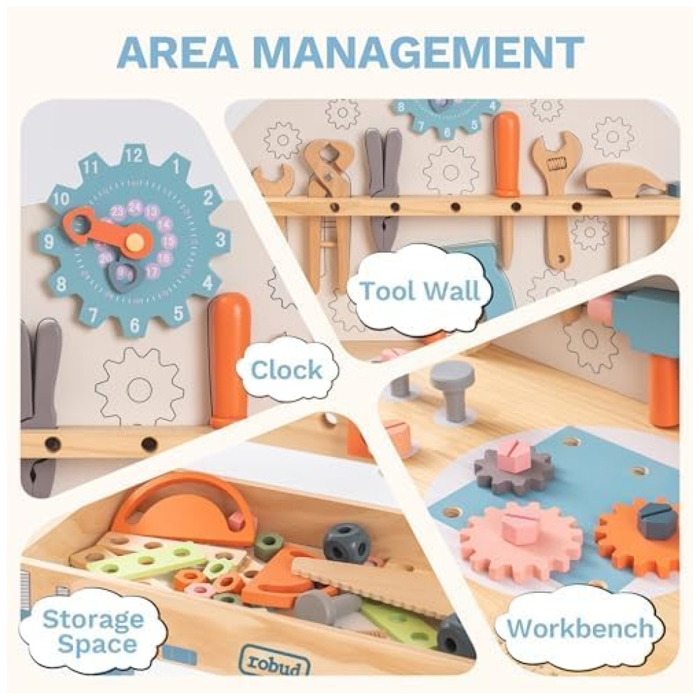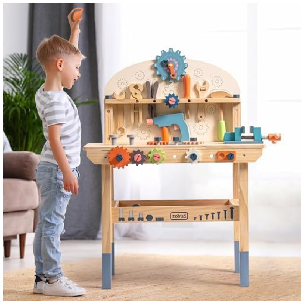 Oficina Educativa Infantil ROBUD em Madeira para Crianças Bancada de Ferramentas de Construção Brinquedo Colorido