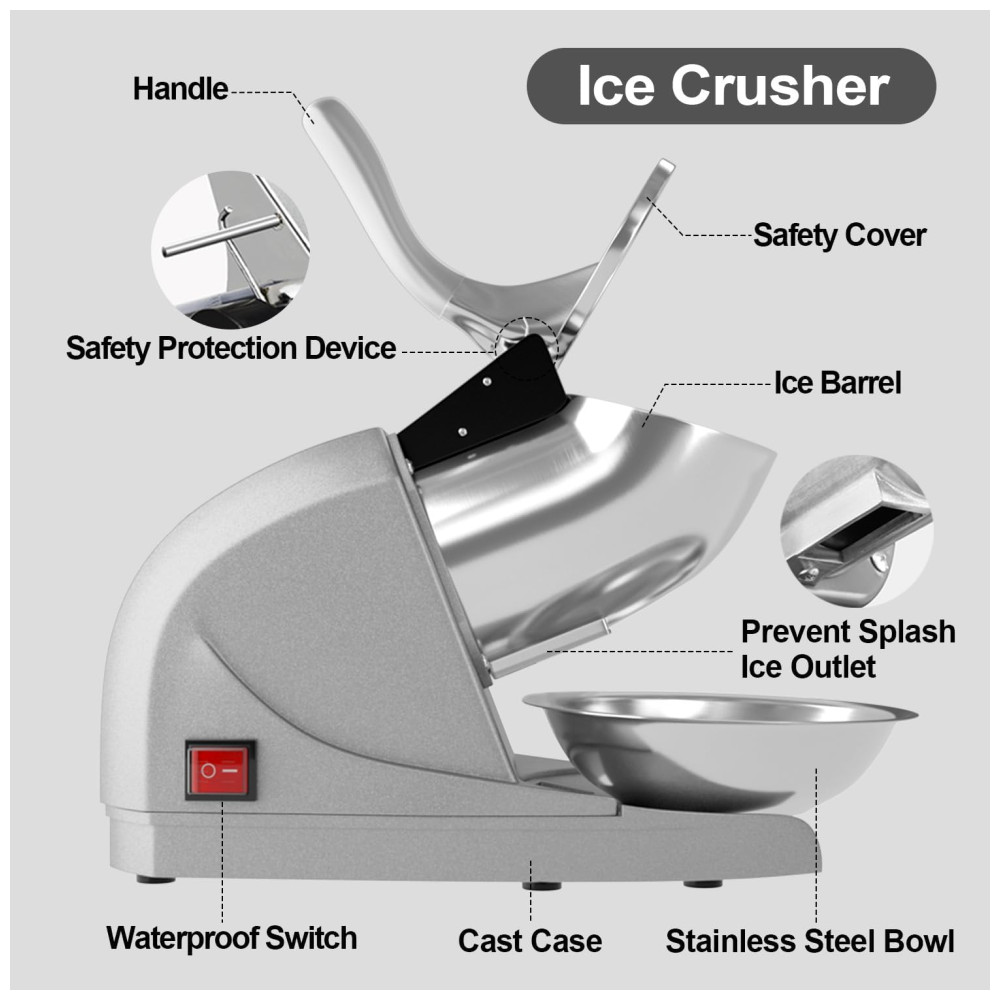 Alta eficiência e três lâminas Nossas três lâminas afiadas e um poderoso motor elétrico de partida trazem a você um triturador de gelo altamente eficiente, esmagando até 99 kg de gelo picado por hora