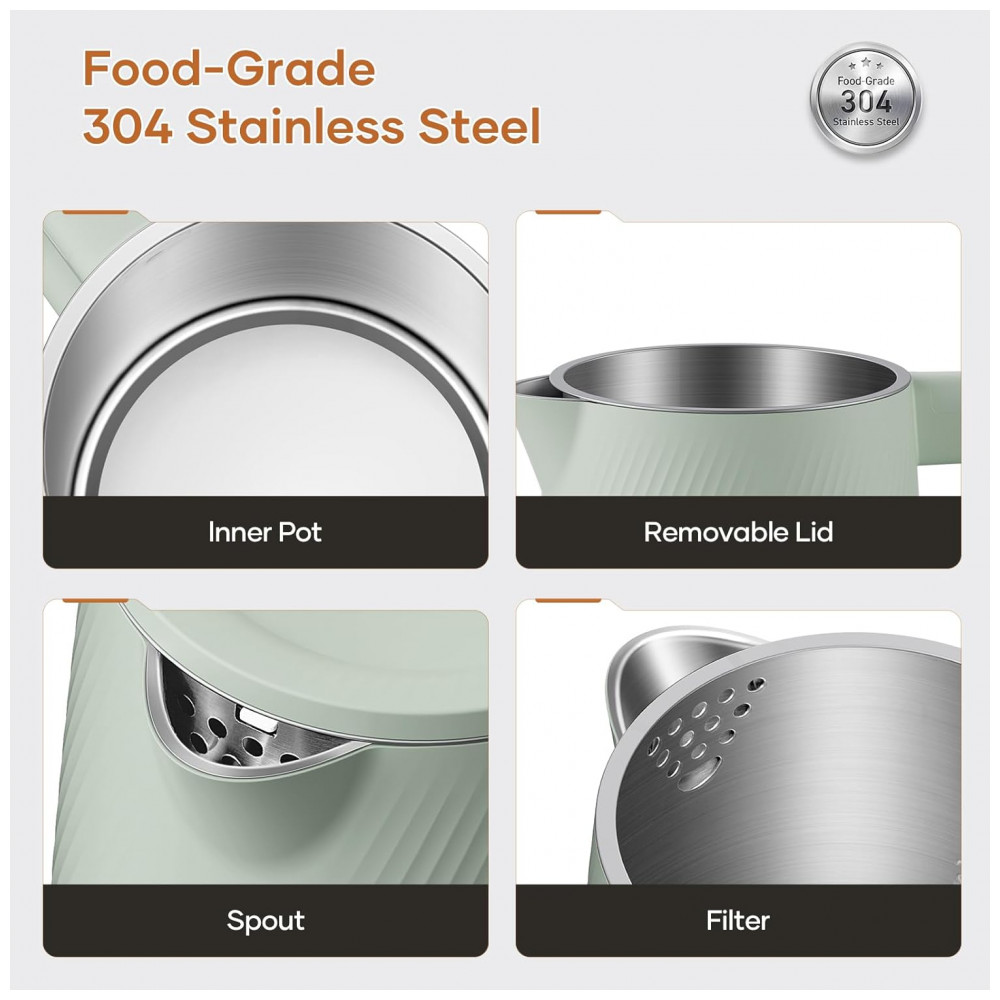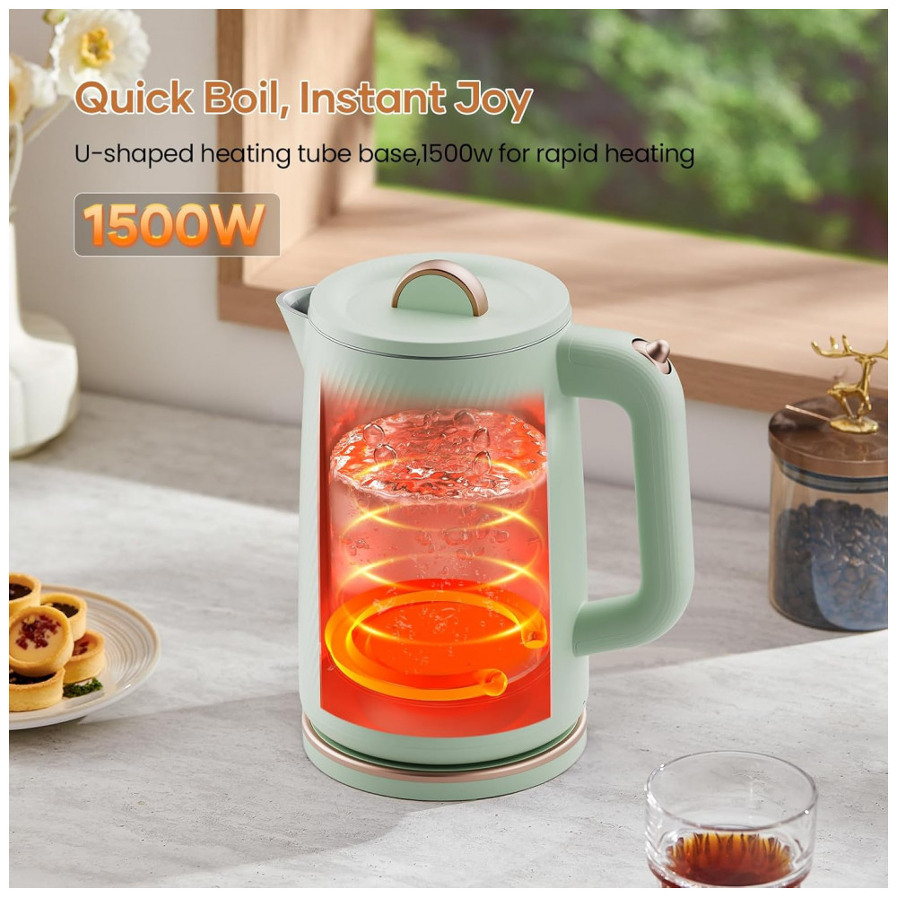 Ferva água rapidamente com a potência de 1500W! Diga adeus às longas esperas com esta chaleira elétrica oleoga, que aquece a água em poucos minutos, ideal para suas manhãs corridas, pausas para chá ou quando precisar de água quente com rapidez. Com capacidade de 1,8 litros, é perfeita para servir de 4 a 6 pessoas, ideal para chá, café, sopas ou mingaus. Seu design seguro conta com uma camada dupla: o exterior em plástico cool-touch protege suas mãos contra queimaduras, enquanto o interior em aço inoxidável 304 de grau alimentício e livre de BPA garante a pureza da água, para uma bebida sempre saudável. A chaleira possui desligamento automático ao atingir o ponto de fervura, além de proteção contra funcionamento a seco, evitando superaquecimento e prolongando a vida útil do produto. Com design moderno e elegante, ela se encaixa perfeitamente em qualquer cozinha. A tampa removível facilita a limpeza, mantendo sua chaleira sempre impecável e pronta para uso. Compacta, segura e eficiente, a chaleira elétrica oleoga é a escolha perfeita para quem valoriza rapidez, segurança e estilo no preparo das suas bebidas favoritas.