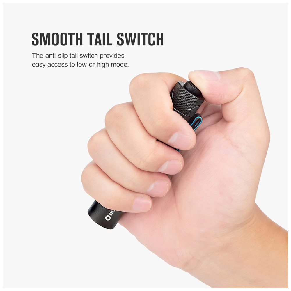 Operação suave acesse momentaneamente ligado e alterne entre os modos 15, 350 lumens com um seletor de cauda tático antideslizante.