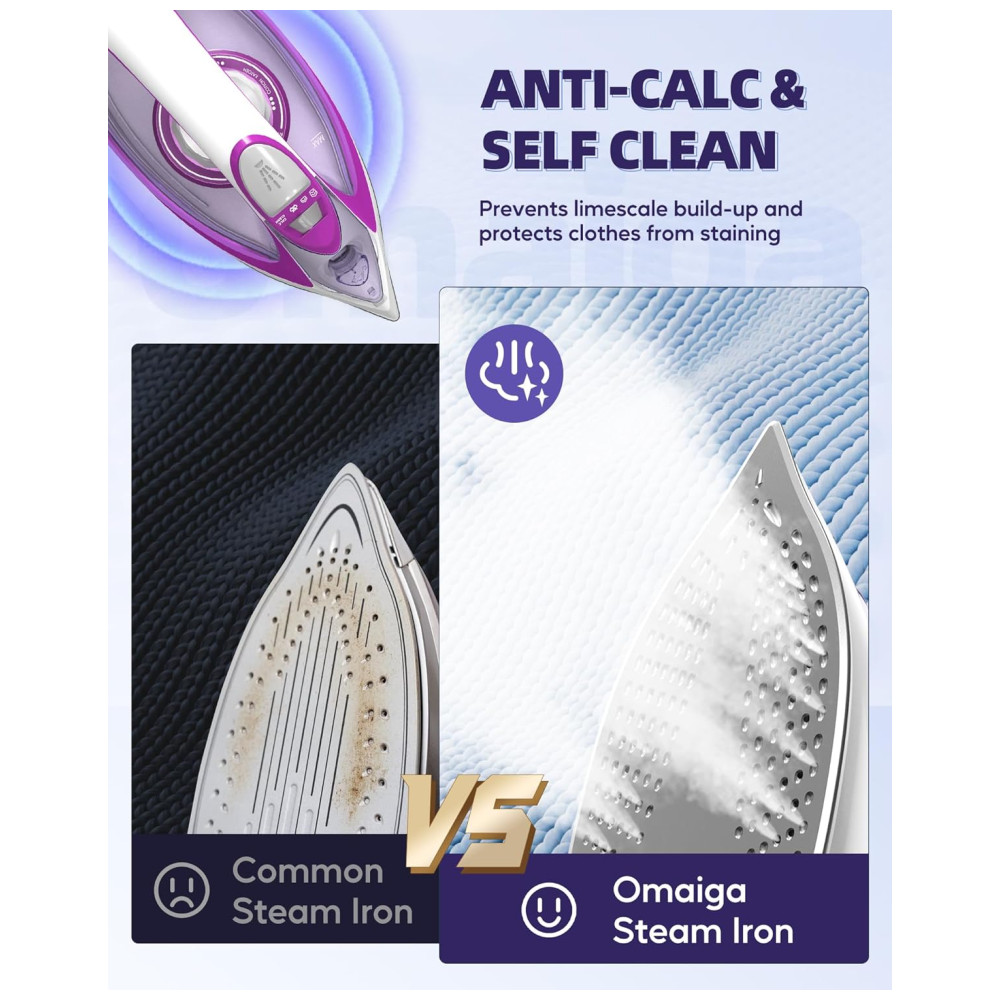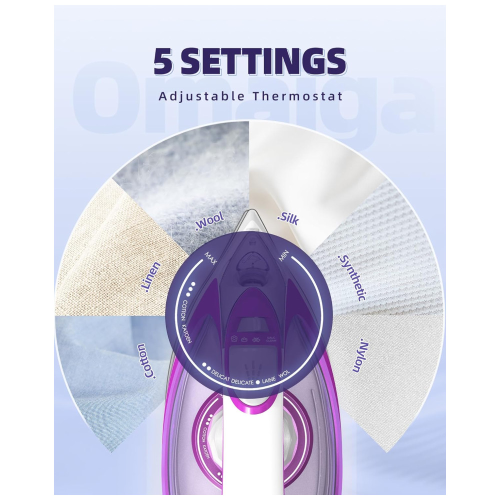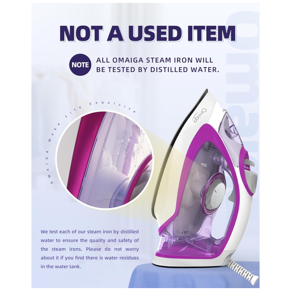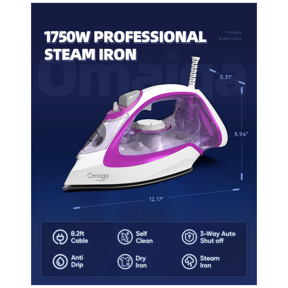 OMAIGA Ferro de Passar a Vapor c Desligamento Automático 1850W 110W Roxo