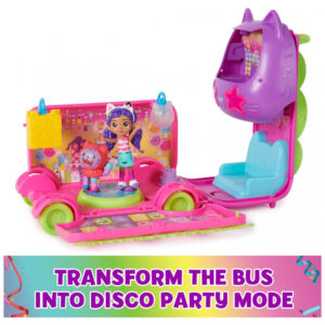 Ônibus de Festa da Gabby’s Dollhouse Playset Transformável com Boneca DJ Gabby Catnip e Acessórios de Casa de Bonecas Brinquedos para Crianças