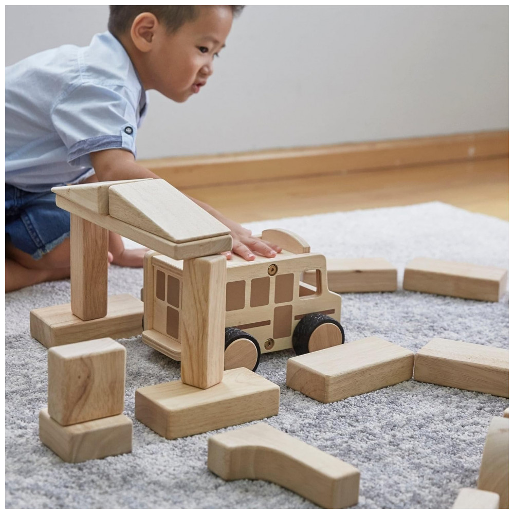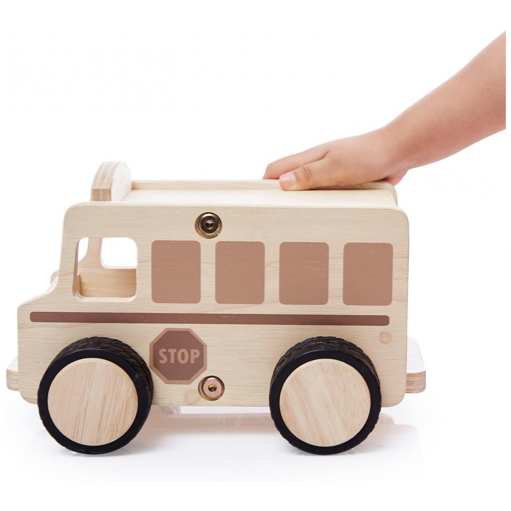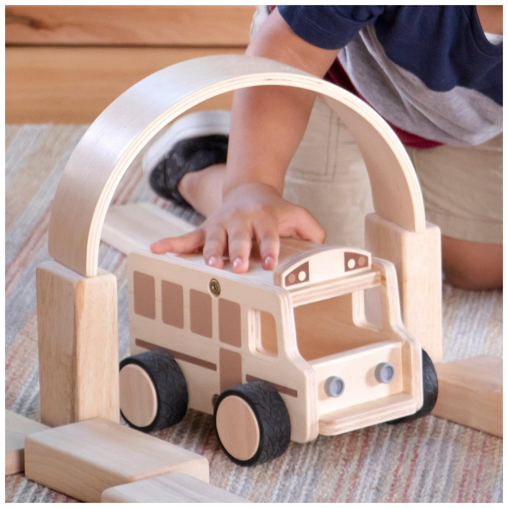 Ônibus escolar de madeira Guidecraft Wooden School Bus para brincadeiras de faz de conta e complemento de cantos de blocos