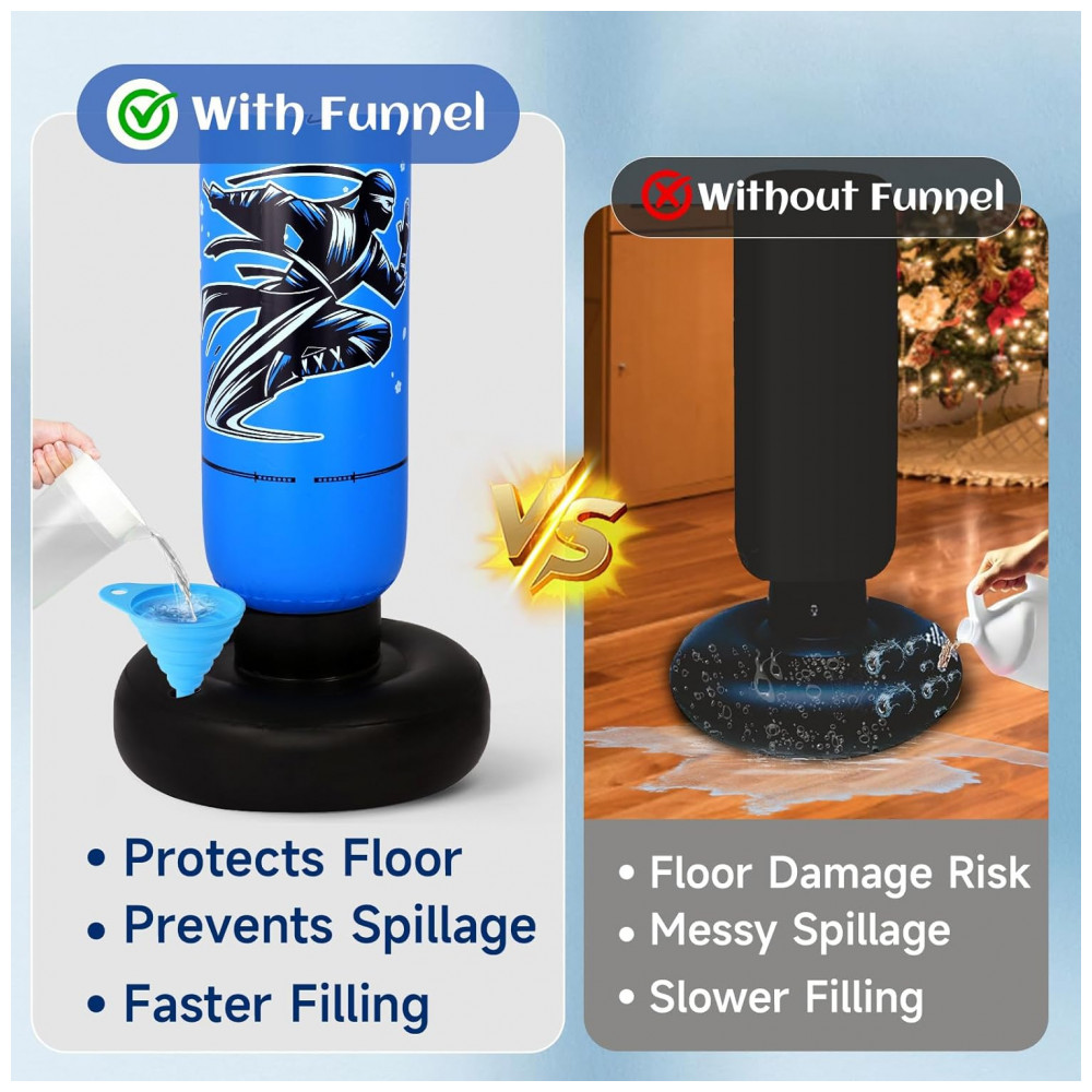 Apresentamos o Kit Boxe Infantil Inflável Onirii 4 em 1 atualizado, a solução perfeita para diversão e exercício das crianças de 5 a 12 anos! Este conjunto completo inclui um saco de boxe ninja inflável de 168 cm, luvas de boxe, uma bomba manual para inflar, um funil para facilitar o enchimento e dois remendos para eventuais reparos. O saco é leve, pesando apenas 1,5 kg, fácil de mover e resistente para uso contínuo.