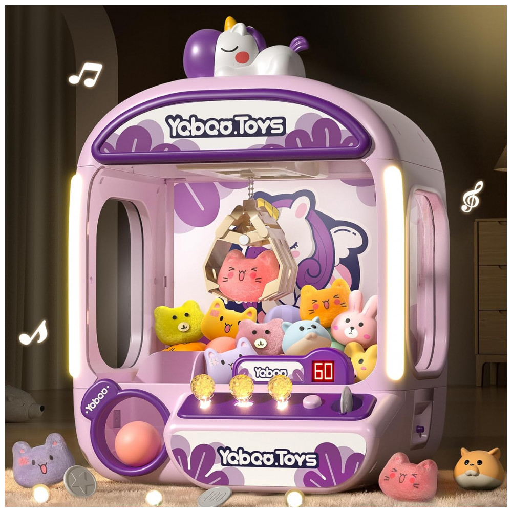 ORANGE OCEAN Máquina de Garra Grande 60 PCS Estilo Unicórnio com Luz e Som Brinquedo Arcade Interativo para Crianças 3-8 Anos
