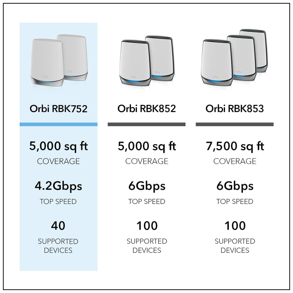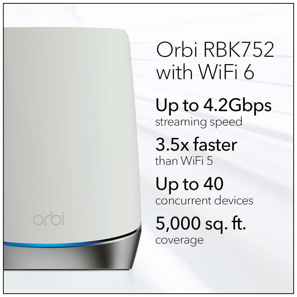 Orbi Roteador Wi Fi Mesh Banda Tripla 4.2Gbps Área 464m2 2 Unid NETGEAR RBK752 100NAS Branco