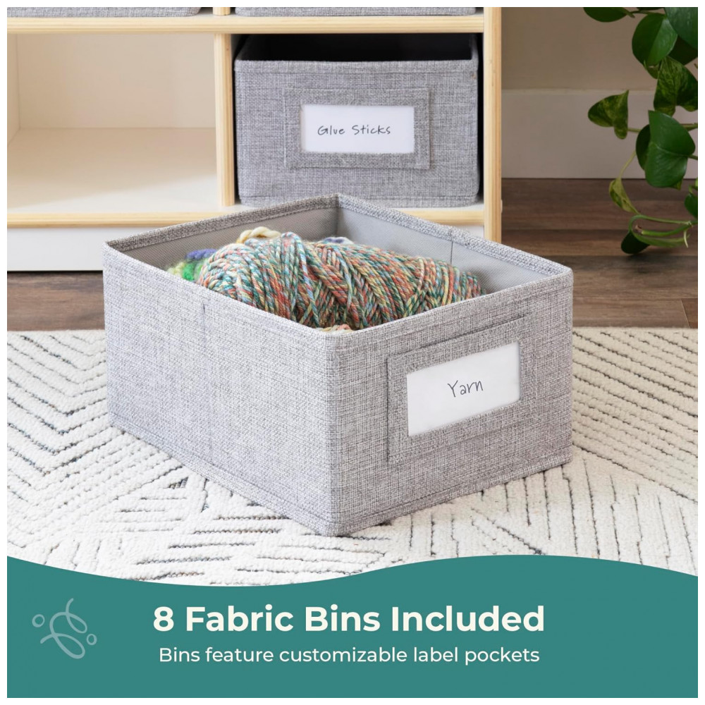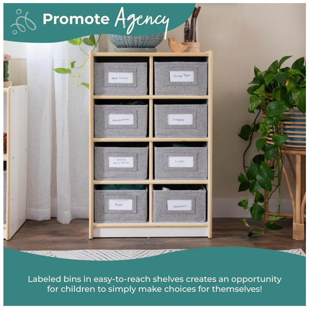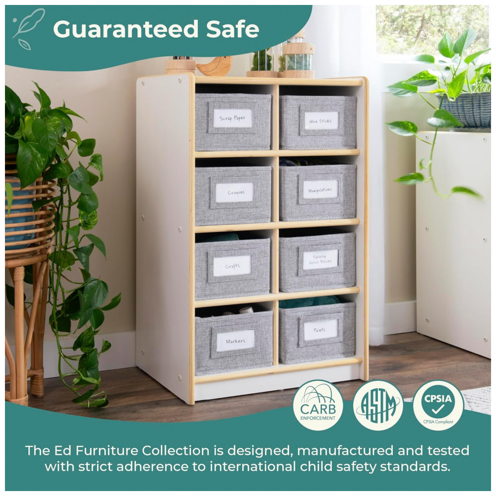 Organizador baixo Guidecraft EdQ Cubby Toy Storage com 8 caixas de tecido branco 50cm