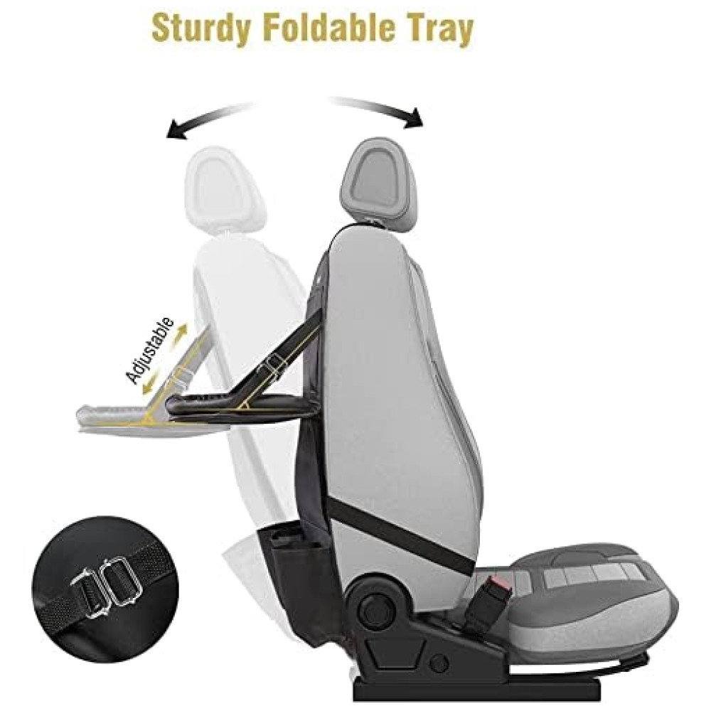 Bandeja dobrável resistente A mesa de jantar dobrável pode ser colocada como mesa de jantar e também como uma mesa de trabalho para segurar seu tablet. Este fantástico organizador de automóveis proporcionará a você e sua família uma confortável e organizada viagem de carro.
