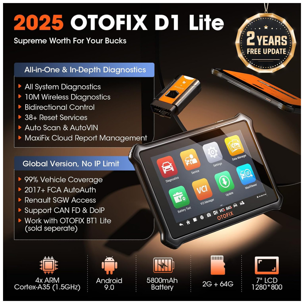 OTOFIX D1 Lite Ferramenta de Verificação Bidirecional com Bluetooth Scanner OBD2 Diagnóstico com Atualizações Gratuitas