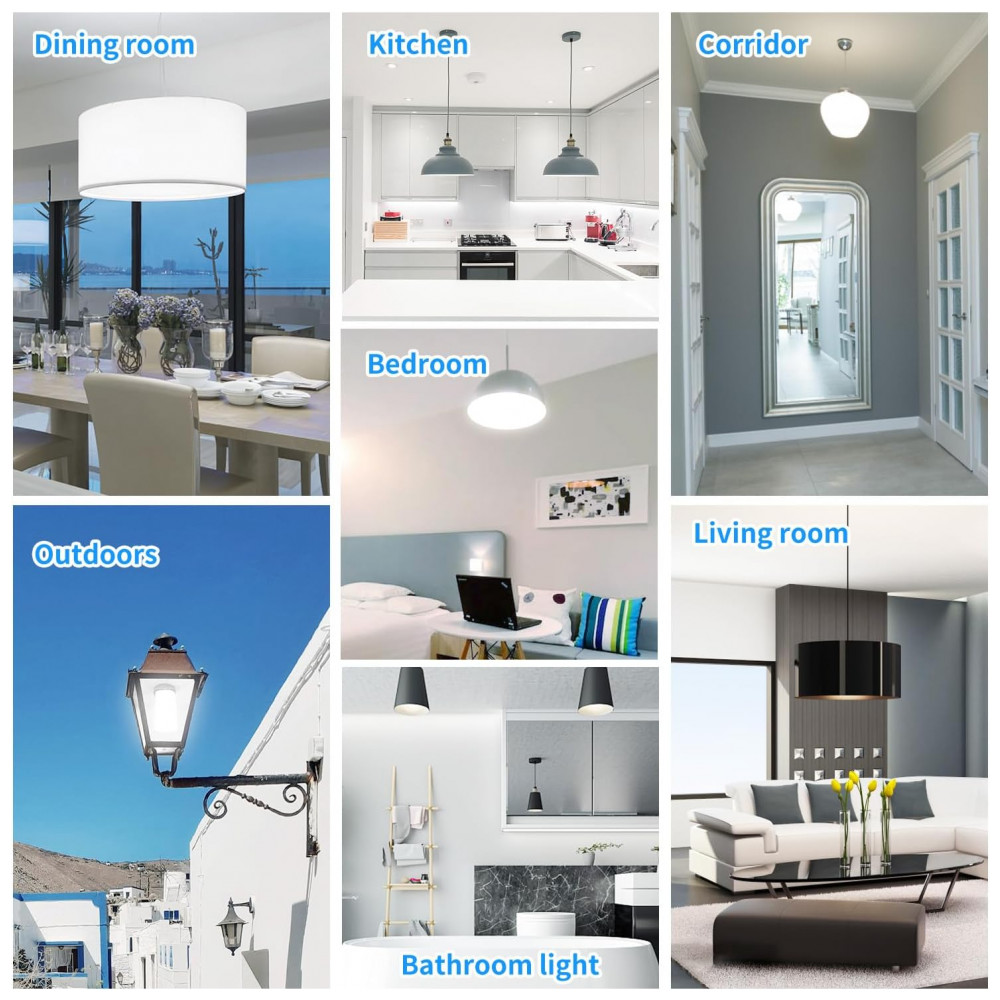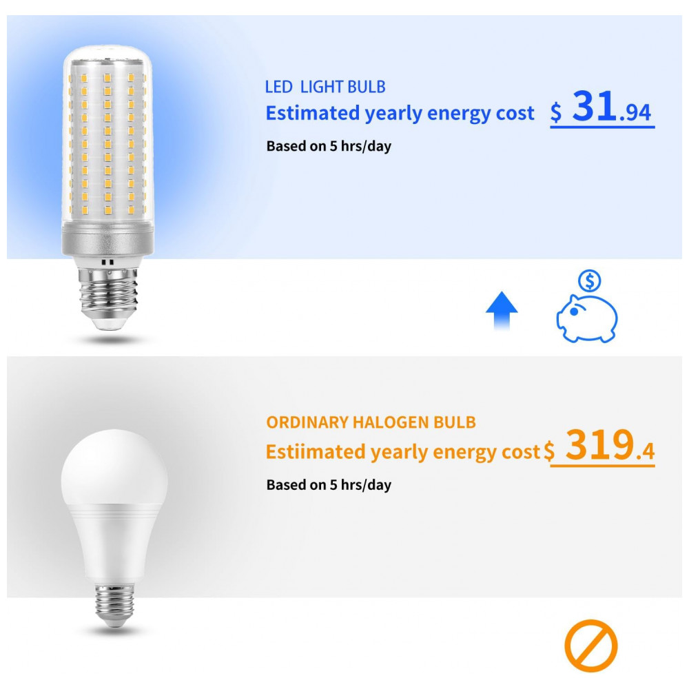 Economize energia e tenha alta luminosidade com nossas lâmpadas de LED de 40W, equivalente a uma lâmpada incandescente de 150W. Com 5000lm super brilhantes e uma luz branca quente de 3000K em 360 graus, proporcionam uma experiência de iluminação excepcional em locais escuros. Proteção ocular: estas lâmpadas de milho LED se acendem instantaneamente sem cintilação, com índice de reprodução de cor CRI80, oferecendo uma luz mais vívida e natural, sem radiação ultravioleta e infravermelha. À prova d’água: projetada com um invólucro à prova de choque único e injeção de proteção, com classificação à prova d’água IP65, pode ser usada com tranquilidade ao ar livre. Mais seguras e duráveis: as lâmpadas de milho de 40W possuem proteção contra sobrecarga, qualidade super estável e vida útil de até 36.000 horas. Ampla aplicação: amplamente utilizadas em lâmpadas padrão E26, lâmpadas de candelabro, luminárias de varanda, lâmpadas de teto, luminárias de pendente, lâmpadas de porta de garagem, refletores externos, lâmpadas de ventilador de teto, corredor, sacada, escritório, etc.