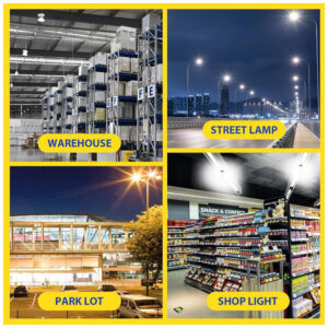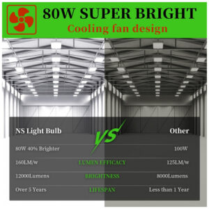 A Lâmpada de Milho LED NS de 80W oferece incríveis 12000 lumens de iluminação branca natural de 5000K, com eficiência impressionante de 150 lumens por watt. Economize energia e ajude o meio ambiente com esta lâmpada equivalente a 800W, substituindo lâmpadas de mercúrio e HID. Além disso, é segura e amiga do ambiente, livre de chumbo, mercúrio e radiação UV. Com certificação ETL, dissipação de calor eficiente e fácil instalação, é perfeita para uso em áreas internas e externas, como garagens, fábricas, jardins e muito mais.