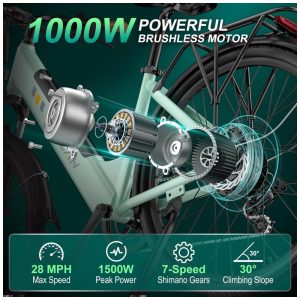 Bicicleta Elétrica Cybervelo EK7 1000W 128 km de autonomia suspensão ajustável tela LCD 26″ verde