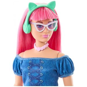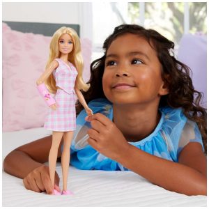 Barbie Fashionistas 243 Boneca Loira com Braço no Gesso Rosa Blusa Xadrez e Saia Estilosa 2025