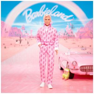 Boneco colecionável Barbie The Movie Ken Ryan Gosling com macacão rosa e patins multicoloridos 2025