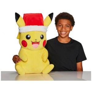 Pelúcia Pokémon Pikachu Natal Jazwares amarela com gorro de Papai Noel tamanho 51 cm