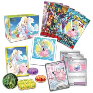 Coleção Premium de Torneio Pokémon TCG Lillie com 6 Boosters Sleeves e Acessórios