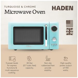 HADEN Micro-ondas 700W 20L Turquesa com Controle Digital Função Descongelar e Início Instantâneo