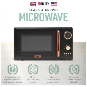 Micro-ondas HADEN 700W 20L Controle Digital Descongelamento Automático e Prato Giratório Preto Cobre