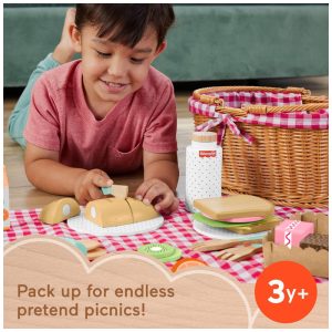 Cesta de Piquenique Fisher-Price 31 Peças de Madeira para Roleplay Pré-Escolar 3+ Anos