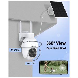 Câmera de Segurança sem Fio Solar Externa com Visão 360 conversa de 2 Vias ANRAN Branca