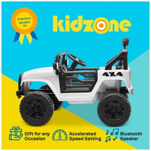 Carro Elétrico Infantil a Bateria 12V com 2 Assentos Luzes LED MP3 e Controle Remoto Kidzone Branco