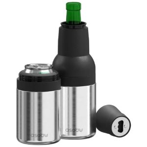 Cooler Portátil para Garrafas de cerveja com Isolamento Duplo Aço Inox ASOBU Frosty Beer Prateado