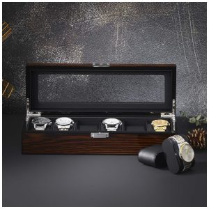 Caixa Estojo de Couro e Visor de Vidro para Relógios com 6 Compartimentos BEWISHOME SSH06Y Marrom