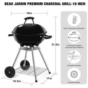 Churrasqueira a Carvão Portátil com Rodas Serve 5 Pessoas BEAU JARDIN BBQ010 Preto