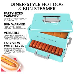 Máquina de Hot Dog Nostalgia até 20 Salsichas por Vez Aço Inoxidável 110V 1500W Azul Turquesa