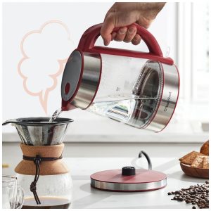 Chaleira Elétrica 1.7 Litros com Jarra de Vidro e Desligamento Automático 110V 1500W Vermelha