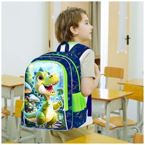 Mochila Infantil WZLVO com Estampa de Dinossauro UV Kit 3 Peças com Lancheira e Estojo – Verde
