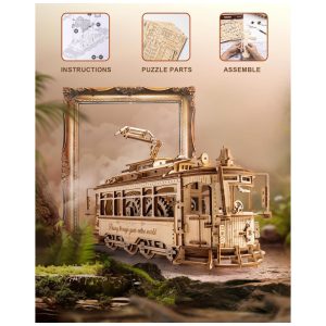 Quebra Cabeças 3D em Madeira para Adultos Tema Trem e Ferrovia com 374 Peças ROKR Marrom