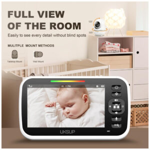 Babá Eletrônica UKSUP Branco Tela 5″ Pan Tilt Zoom 2x Bateria 30h Sensor Temperatura SM663