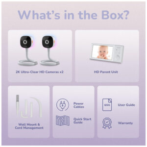 Babá Eletrônica Hubble 2 Câmeras 2K HD Tela 5″ Detecção IA Rosto Virada Choro Prático