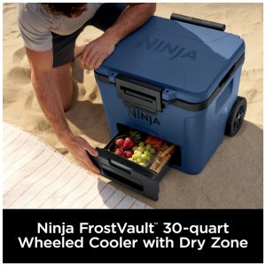 Caixa Térmica com Rodas Ninja FrostVault 28 L Azul Gaveta Dry Zone Isolada