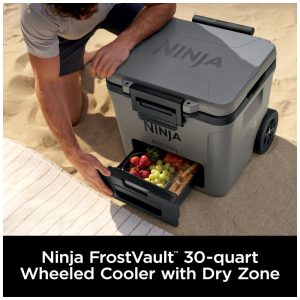 Caixa Térmica com Rodas Ninja FrostVault 42 L Cinza Gaveta Dry Zone Isolada
