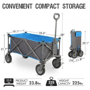 Carrinho Dobrável para Camping e Jardim com Tecido Removível Capacidade 100kg PORTAL Cinza e Azul