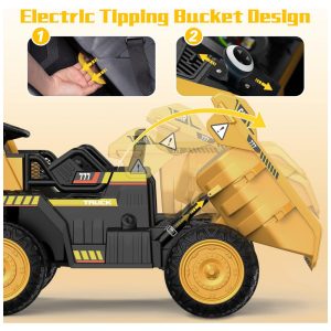 Caminhão de Construção Elétrico Infantil 2 Assentos com Caçamba 12V ANPABO Amarelo