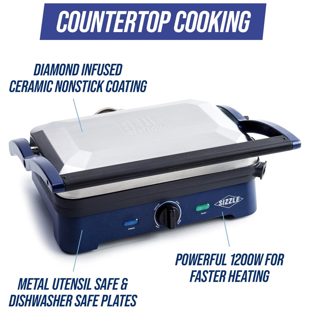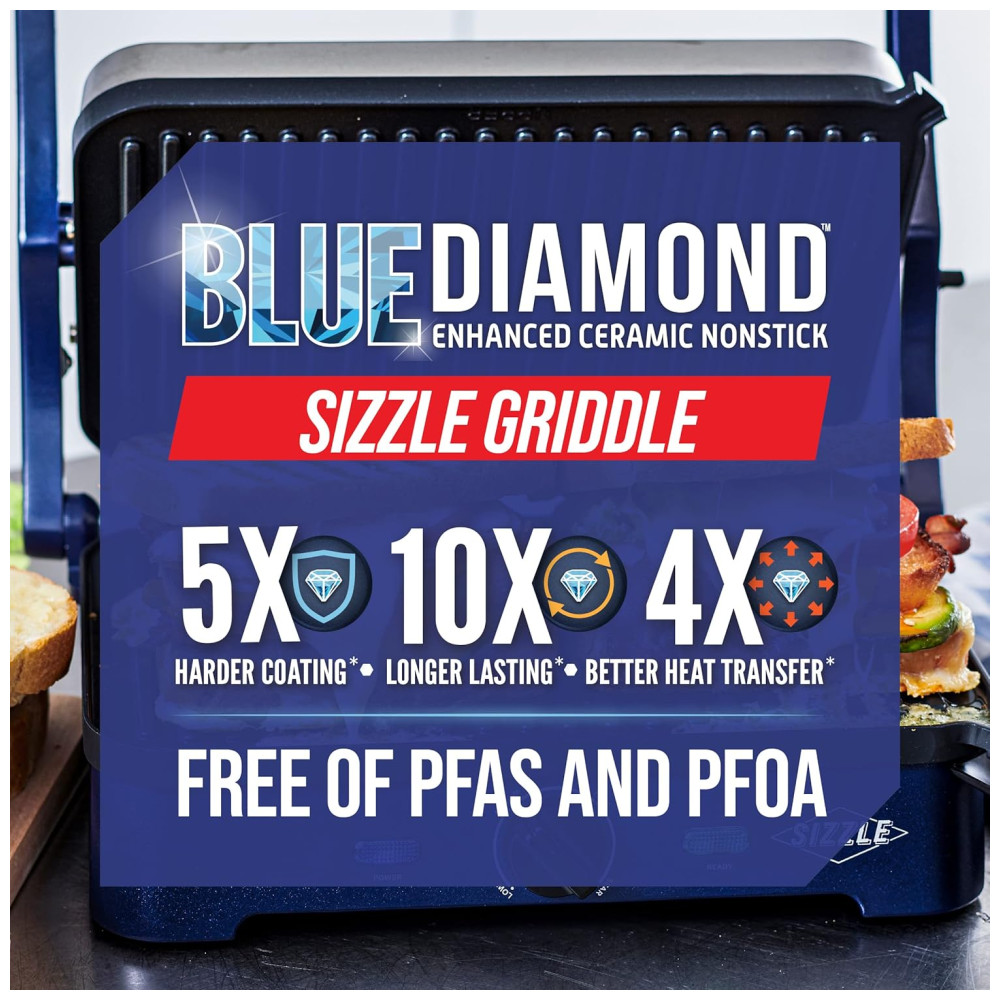 Painéis de cerâmica antiaderente Sizzle Griddle Deluxe azul BLUE DIAMOND COOKWARE CC002899 002 Azul