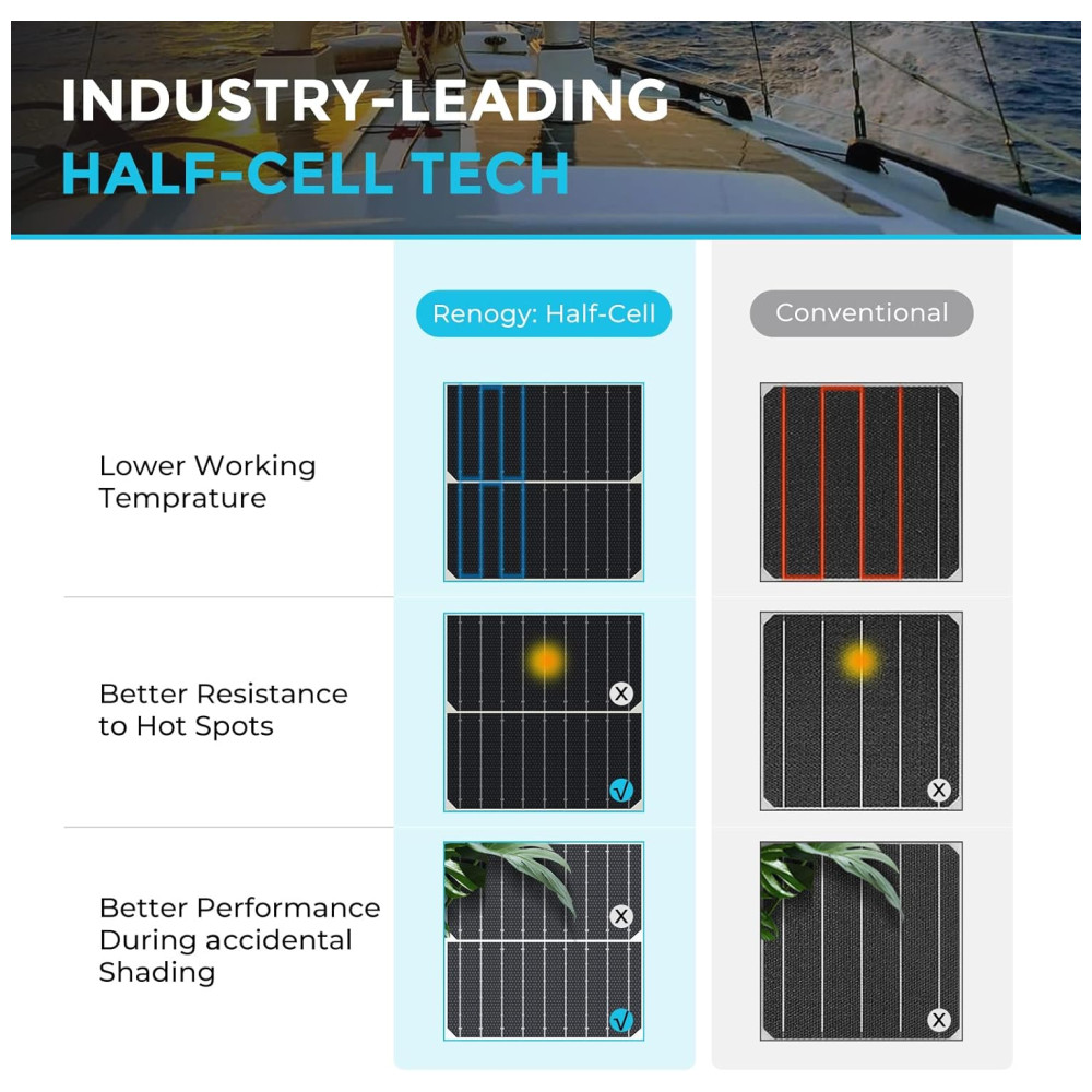 Painel Solar Dobrável Semi Flexível 200W 12V Monocristalino para Off Grid Cabine RV Marinha e Van Renogy