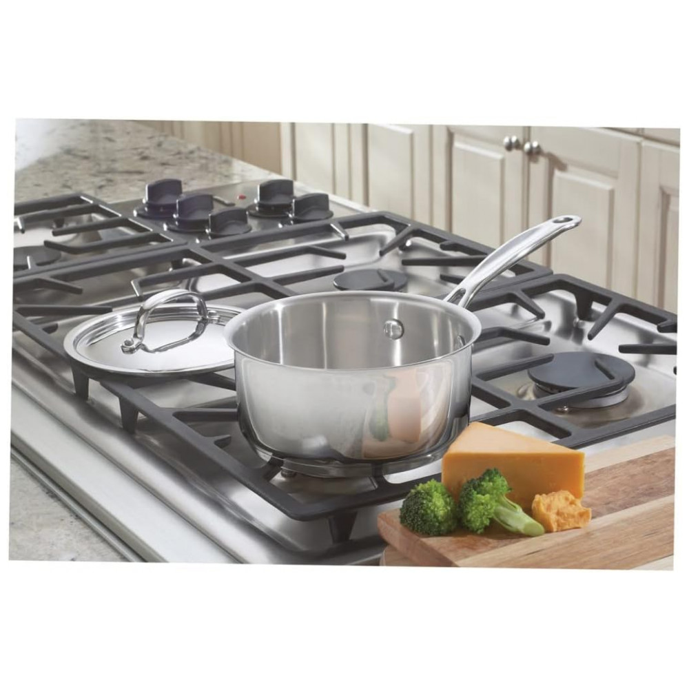 COZINHA PREMIUM a superfície de cozimento em aço inoxidável não descolore, reaja com os alimentos ou altere os sabores. Marcações de medição para facilidade de uso, vazamento sem gotejamento e tampa da trava de sabor