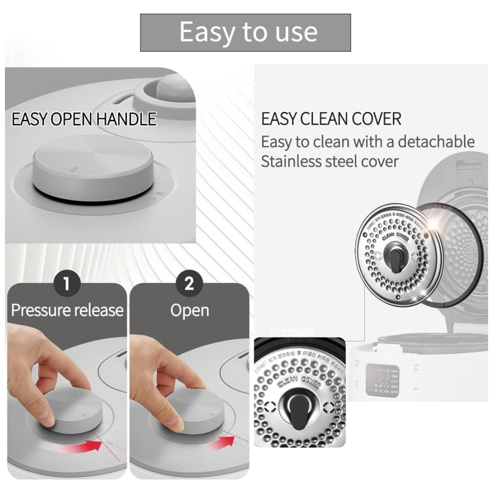 MULTIFUNCIONAL E VERSÁTIL: Desfrute de uma capacidade para 6 xícaras e 10 opções de menu, incluindo 5 menus de pressão arroz pegajoso, grãos mistos, arroz integral, grãos na salada, prato a vapor e 5 menus sem pressão menos pegajoso, grãos longos, Congee, cozimento lento, sous vide.