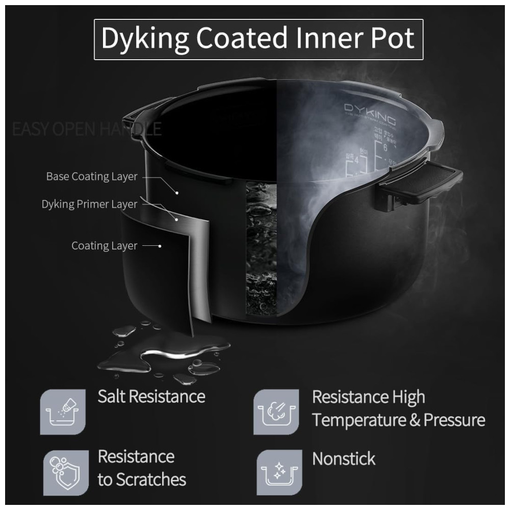 DYKING COATED INNER POT: Um material inovador, altamente resistente ao vapor de alta pressão e à umidade, projetado para panela de arroz de pressão com resistência a sal e arranhões