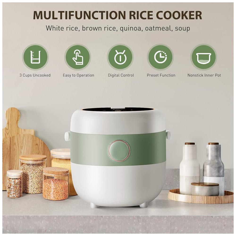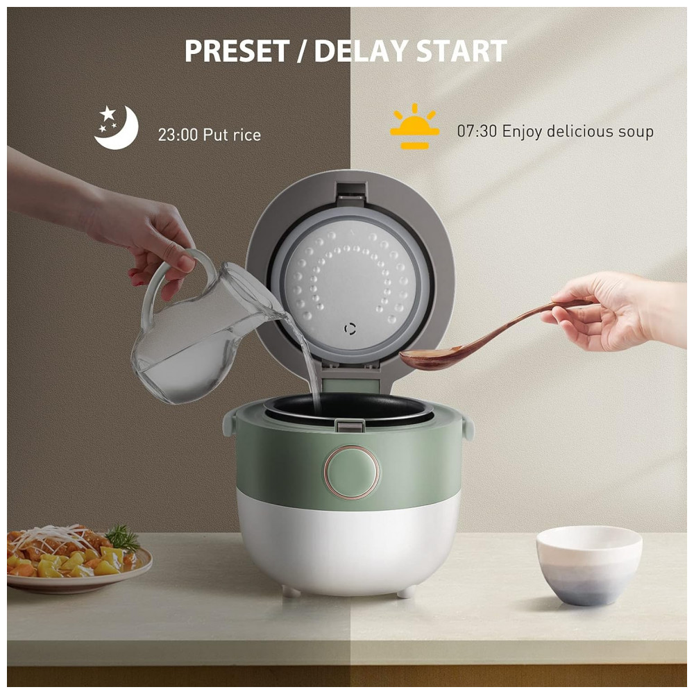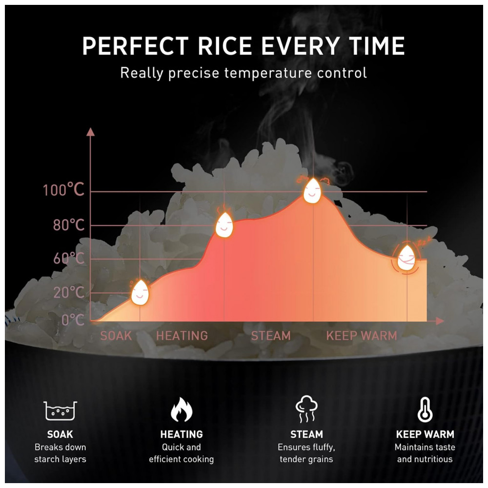 PANELA DE ARROZ MULTIFUNCIONAL: Possui 4 menus para cozinhar arroz branco, integral, quinoa, aveia, sopa e até panela quente, atendendo às suas diferentes necessidades culinárias. Atrase o temporizador e mantenha a função quente para um planejamento flexível das refeições.
